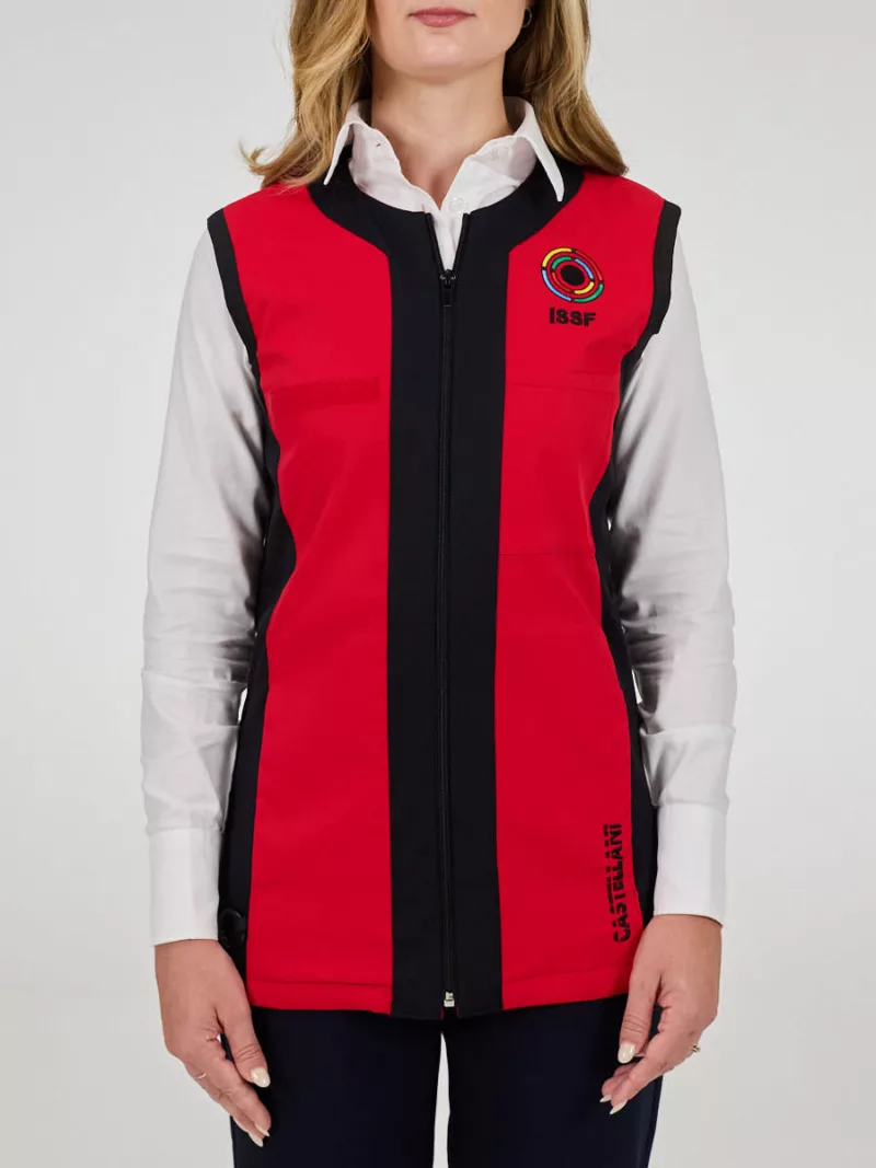 The ISSF jury vest for women is the only officially licensed garment for female Jury and Referee roles, exclusively produced by Castellani for the International Shooting Sport Federation. Designed with a female fit, this vest merges authority, comfort, and elegance.